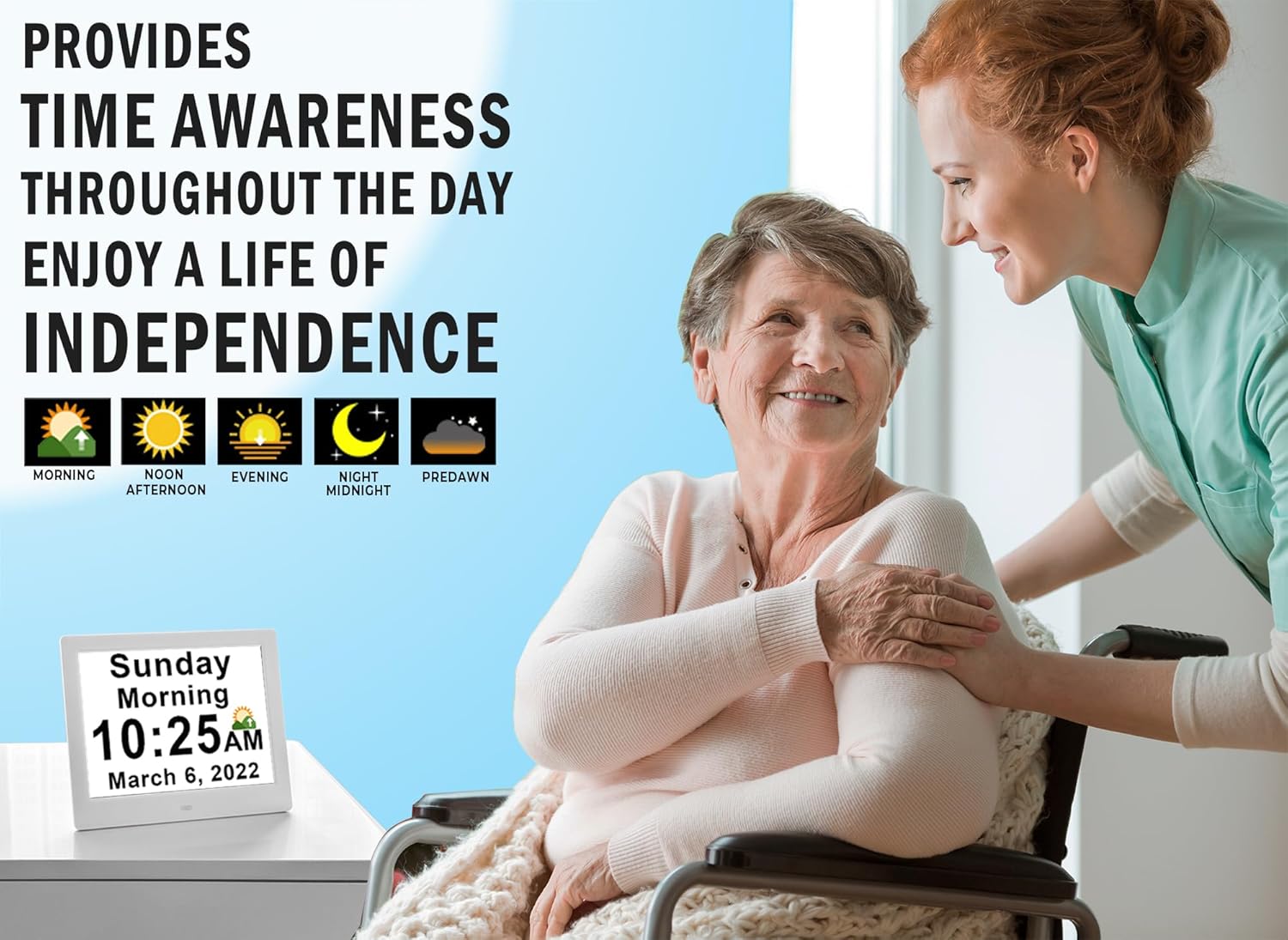 Eine unterstützende Uhr für Senioren, Gedächtnispflege und Familiennutzung.